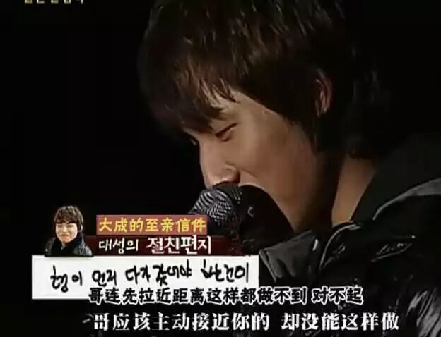 有段时间,大声和胜利的关系不太亲密,甚至“有些尴尬”,所以成员们一起上了节目《至亲笔记》,以此来拉近二人距离。在节目最后说真心话的时候,大声也是先指出是自己没做好:
