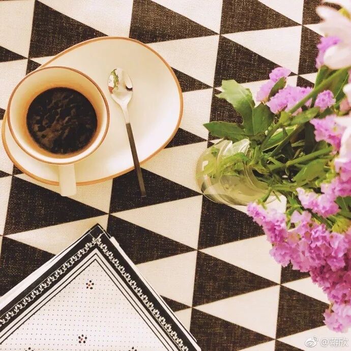 鲜花,餐垫,咖啡,这一系列搭配出来的仪式感满满的。在这背景的衬托下,给美食照加分不少,也不自觉要给蒋欣这张竖个大拇指!