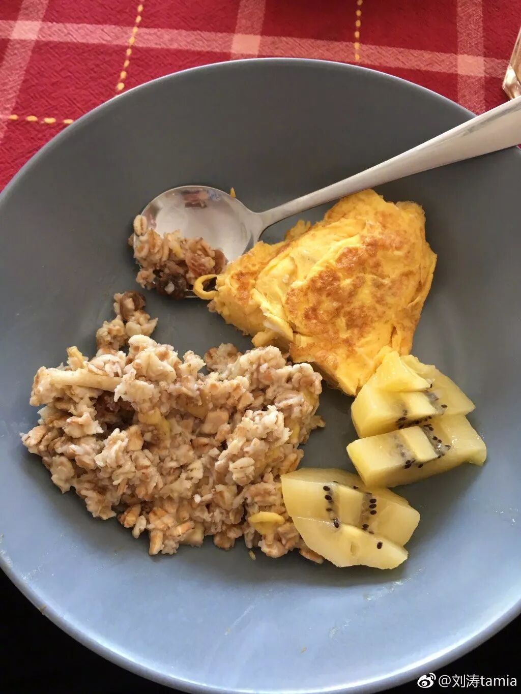 刘涛好身材离不开她每天的健身锻炼,她的健身餐也非常简单,但是简单也别太随意!那勺了一半麦片的勺子,能抖掉再拍吗?