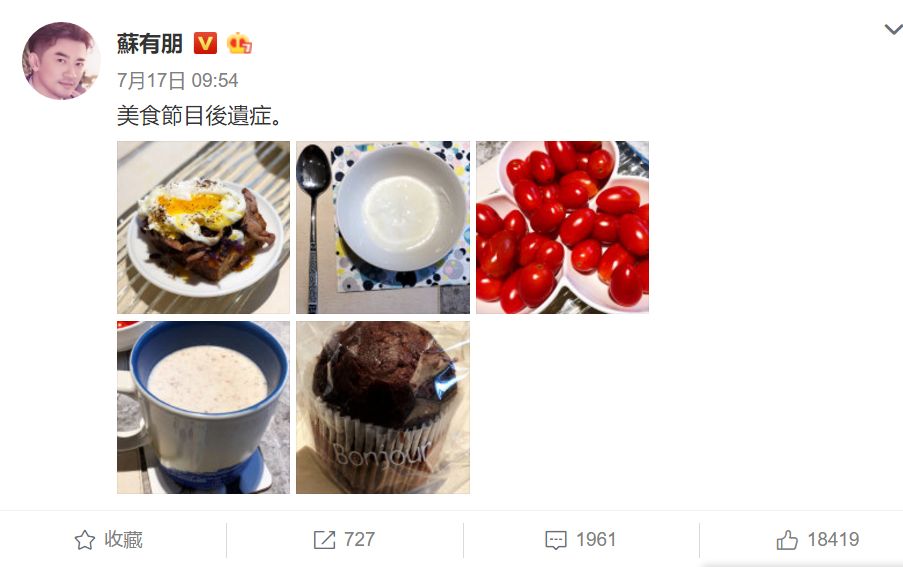 话说自苏有朋参加完这档节目后开始在微博疯狂秀厨艺,拍的照片都超有食欲,并戏称是做美食节目后遗症——