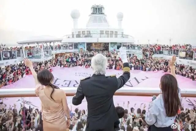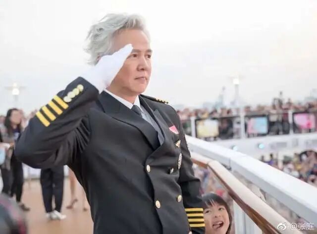 网上流传这样一张图片:一艘大型邮轮的二楼甲板上,站着林瑞阳、小陶虹和张庭等一众明星。其中林瑞阳戴着白手套,穿着船长制服,行“军礼”。