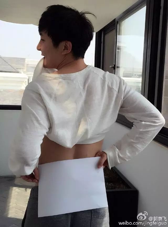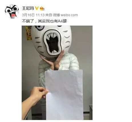 而严屹宽的老婆杜若溪也禁不住小伙伴的唆使,也发了张A4腰的照片。结果,居然比A4腰还要窄一些……