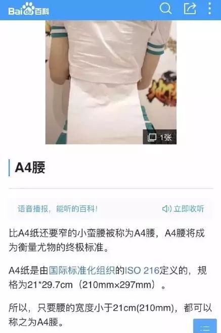 最近小i的微博、朋友圈又刮起了一阵刷屏风,都在秀什么A4腰。据说,比A4纸还要窄的小蛮腰可以被称为A4腰,也就是腰的宽度小于21cm(210mm)。大概就是说,腰杆和一张A4纸一样大。