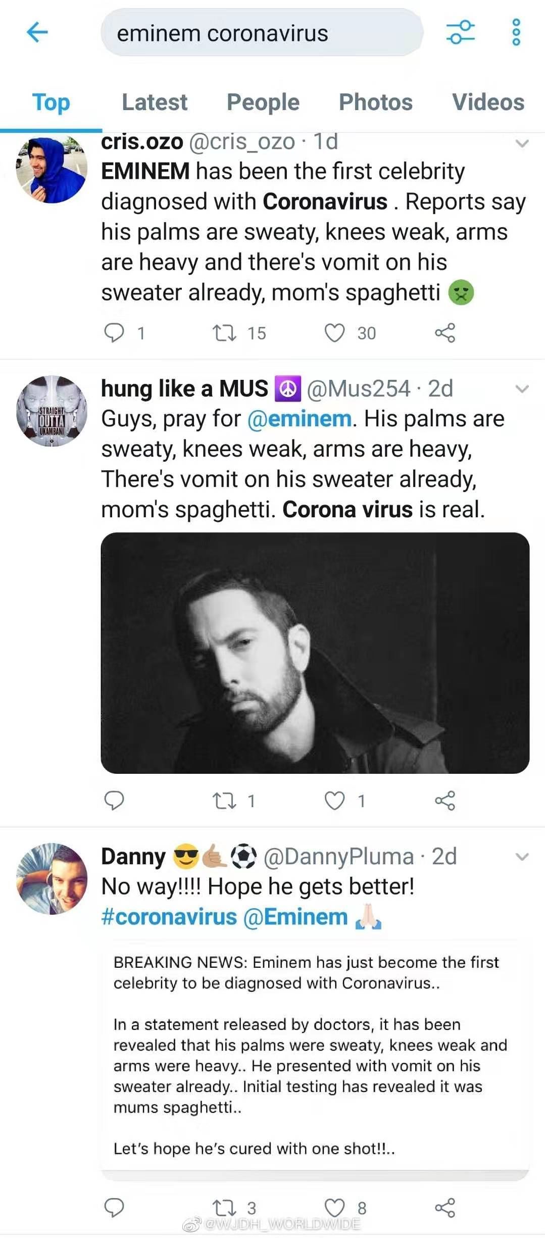 也就在前两天,我在网上看到了“Eminem得了冠状肺炎”的新闻,一开始把我是吓了一跳。