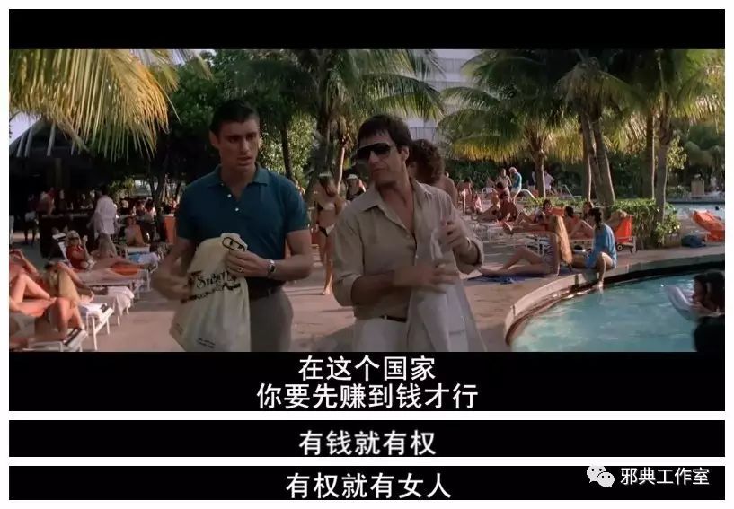 托尼是个古巴来的土鳖,他不凭借钱和权利怎么吸引女人,谈吐、幽默和修养?笑话!
