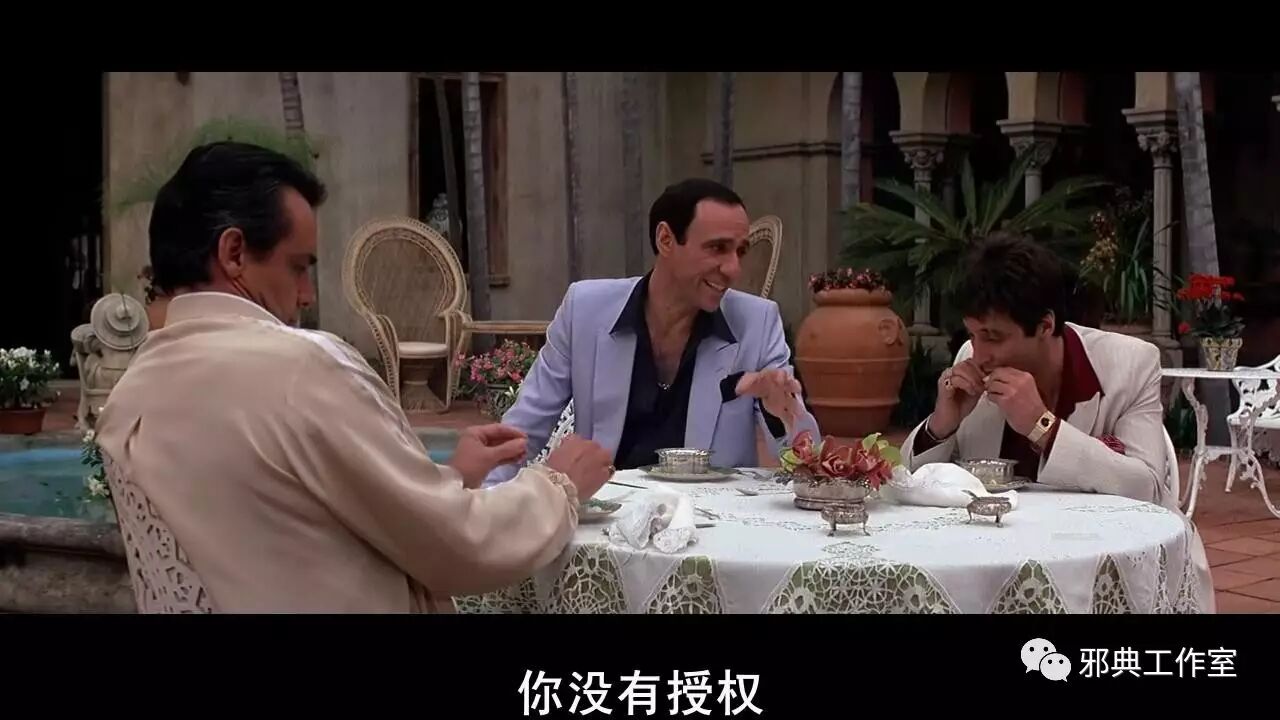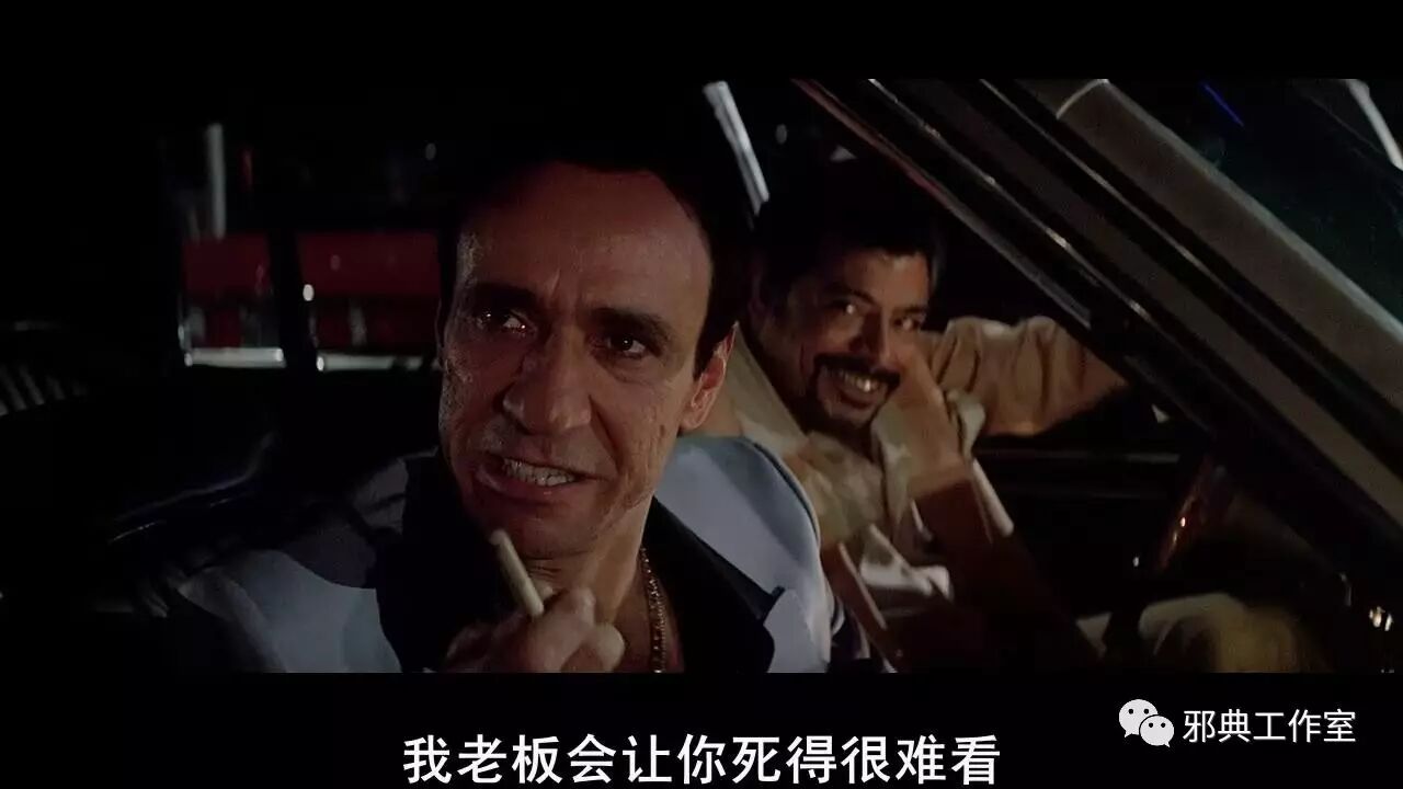 而托尼自作主张地和大毒枭谈定了一笔海洛因生意(托尼不是个安分守己的人!普通人大概只会安分守己,保命要紧,可是这样,你也就没有了上升的机会。),回来时黑社会老大就怒了,虽然没有将托尼怎么样,却也看透了托尼的狂妄。