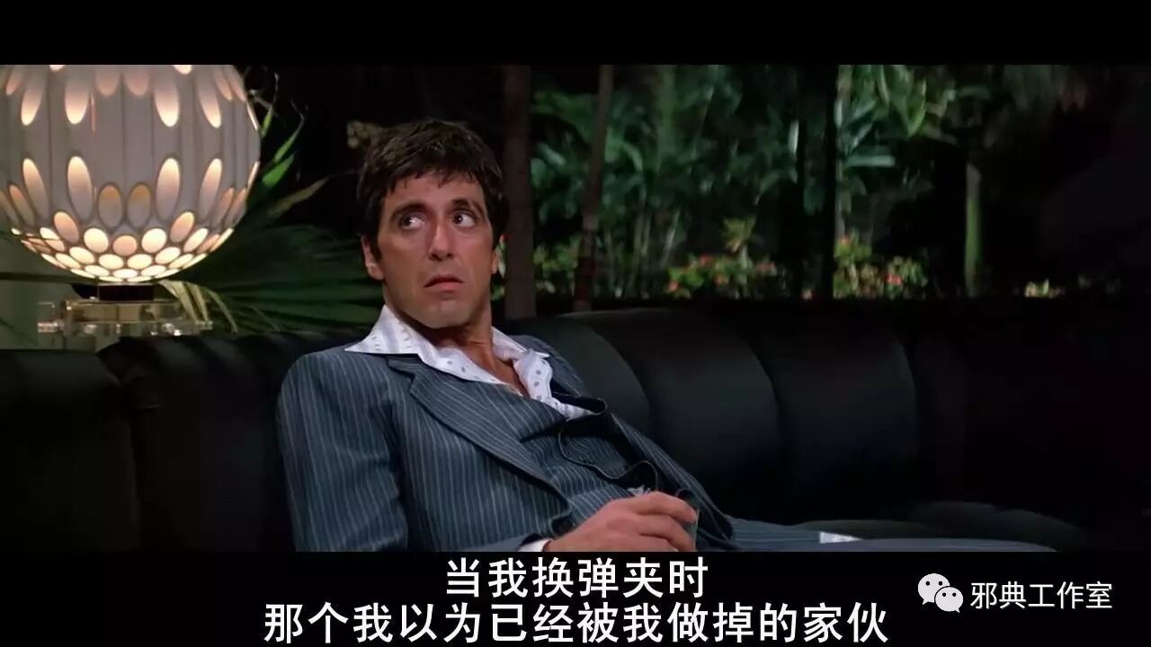 (换作普通人,大概要吓尿了,正因为托尼的镇定,大毒枭才相信了托尼。)