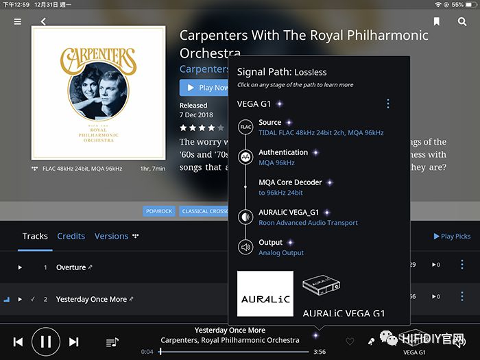 TIDAL上已有许多MQA(Master Quality Authenticated)高规格的专辑可以聆听,Lighting DS也能支援播放。