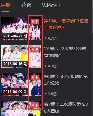 有的节目则干脆必须充值会员才可以播放或是可以提前看更新的一集,《明日之子》和《创造101》两档重磅音乐综艺的线上盈利模式也已从免费收看改为全集收费了。
