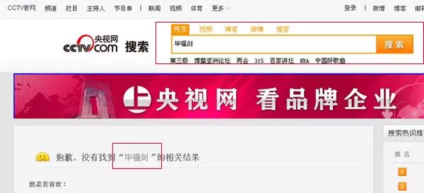 小编听到这个消息后,赶忙上网找真相。经过小编谨慎小心的查证,目前,央视网的主持人介绍页面上已找不到“毕福剑”的名字,而在央视网的搜索栏输入“毕福剑”三个字,得到的结果也是“抱歉,没有找到毕福剑的相关结果”。