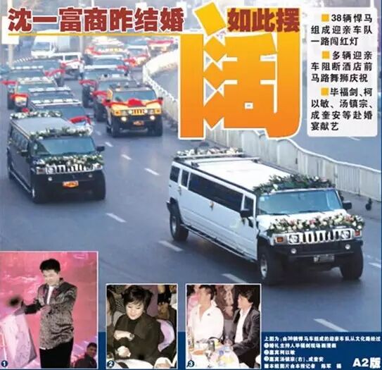 这帮台里同事介绍介绍也就算了,毕姥爷还亲自赴沈阳,帮土豪当起了婚礼主持人:2007年11月24日,辽宁一富商结婚,动用38辆悍马迎亲,毕福剑主持了婚礼,还即兴画了一幅速写,送给了一名唱歌的男孩。在毕福剑调动下,整个婚礼过程中会场里充满了笑声。(据《华商晨报》报道)