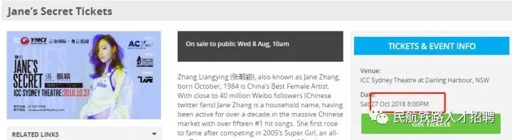 1.张靓颖10月27日晚上8:00在悉尼icc sydney开演唱会,时长3个小时。