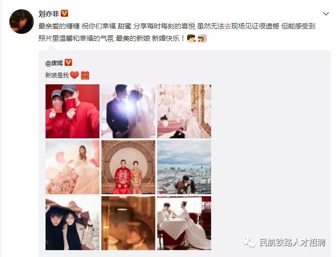 恭喜唐嫣,作为一个内外兼修的女演员,来自各方朋友的祝贺肯定少不了。