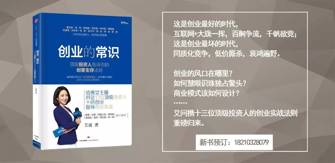 艾问传媒第二本诚意之作,由艾诚亲自执笔、中信出版社出版的《创业的常识—来自顶级投资人的创客法则》已经上线!通过微信艾问商城购买的书籍可私人定制艾诚的祝福寄语,随书还赠送艾诚的亲笔签名照片,购买普通版点击文章最下方“阅读原文”即可获取购买链接!