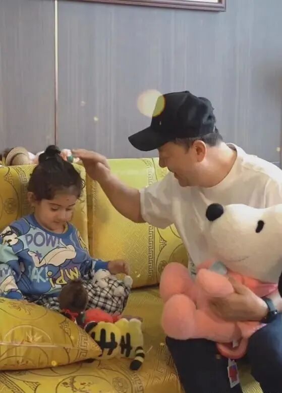 当天,郭涛身穿白色T恤搭配休闲长裤,头戴黑色棒球帽,打扮十分舒适,而小女孩则穿着一件蓝色印花上衣,微卷的长发在头顶绑成丸子头,五官深邃精致,脸蛋圆嘟嘟十分可爱,漂亮得像洋娃娃。