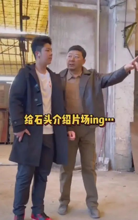 郭涛领着儿子参观了自己拍戏的地方,还热情地为他做介绍,最后两人一起在棚里拍摄了合照,不约而同看向对方,配合十分默契。