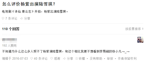 尤其是青云志公布了杨紫饰演陆雪琪之后,不知道背了多少锅,连一向以犀利著称的天涯豆瓣都看不下去了。
