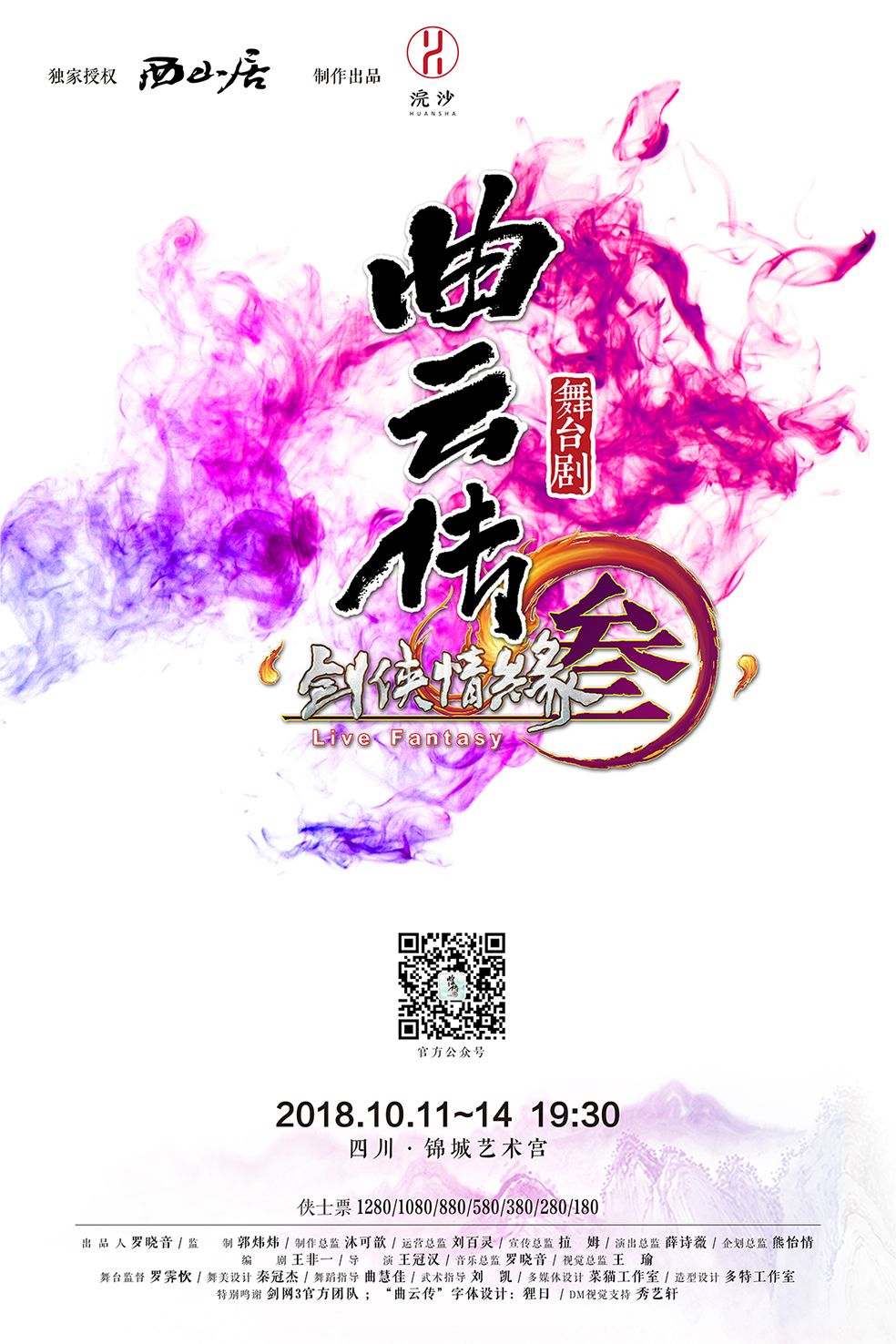 舞台剧《剑网3·曲云传》成都站于2018年10月11日-14日在锦城艺术宫拉开帷幕,现各大平台均可购票,大麦网、聚橙、川艺、永乐等平台均可购买~