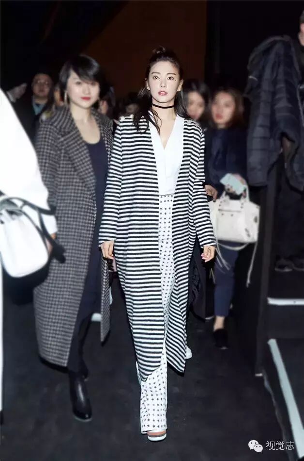 因出演《美人鱼》又火了一把的张雨绮,身穿MaxMara 2016春夏系列条纹风衣搭配白色上衣与星星图案长裤,完美的修了一把长腿。