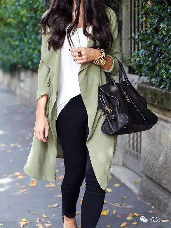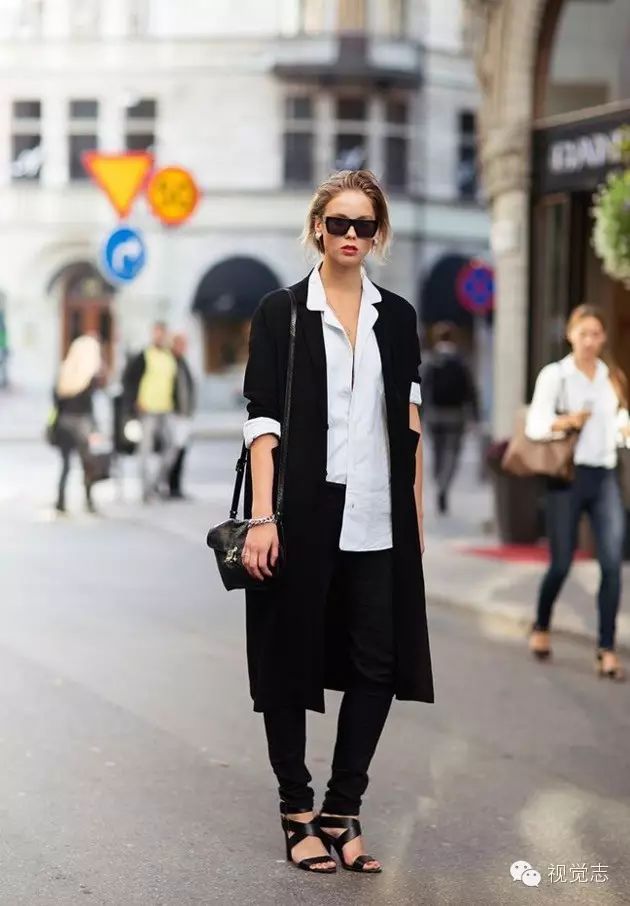 黑色风衣最显成熟气质,随意中轻松展露性感。黑白一起,打造完美搭配。