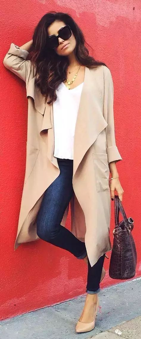 经典长款风衣,再配上一双小高跟,不经意间就是满满的职业范儿。