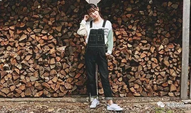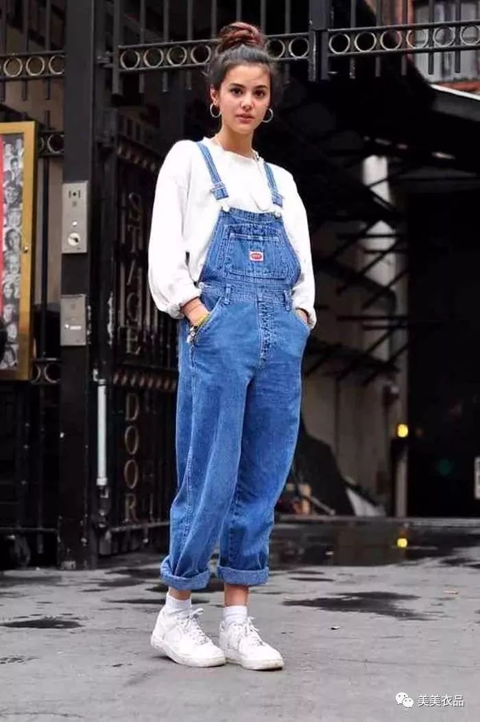 除了毛衣之外,背带裤和卫衣的搭配更是让街头感1+1>2的组合,简单的白色卫衣搭配牛仔背带裤,简单时髦,加个丸子头更可爱了。