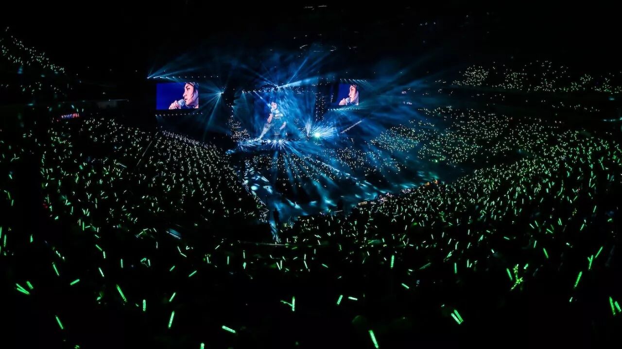 除逆天舞美“旋转九宫格装置”以外,本轮巡演周老板还为全场观众提供高科技荧光棒。通过中控交互设置,根据现场歌曲节奏氛围调整闪频和颜色,燃爆全场。美轮美奂的灯光变幻流转,营造出最美的彩虹海洋。