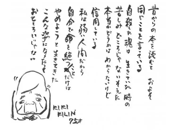 “读过去的书,大概都讲了同一个道理,自杀者的灵魂所受的苦,并不是生前所经历的那些苦。这句话是真是假,我不清楚,但我相信这句话。因为我是个软弱的人,不想亲手断送自己的性命。活成现在的这个样子,不也挺有意思的?”