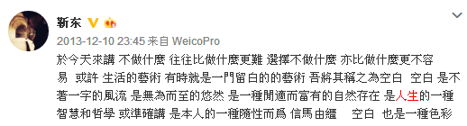 在博文中,靳东引用了捷克作家卡夫卡的名句来表达自己对生活和戏剧的认识,由此也引发了网友的热烈讨论,并纷纷给出了自己的理解。为了更好地读懂今天的靳东,请跟着小编一起复习靳东过往对生活和戏剧的感悟。