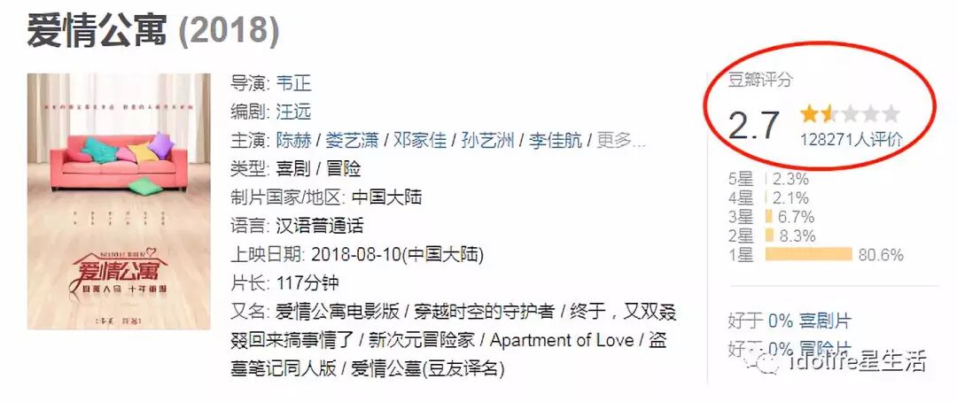 最近上映的电影《爱情公寓》,真可谓是国产电影中的奇葩了。豆瓣评分2.7,票房却快突破5亿。