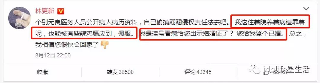 更是有该医院的医生微博截图佐证,林更新当天确实在某医院做手术 ↓