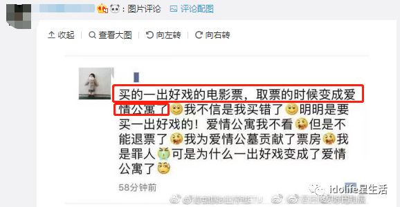 小妹相信,但凡是有点视力的人都能看出,很显然该网友一开始买的是《一出好戏》的电影票,被机器篡改成了《爱情公寓》,然后又由人工手动划掉改回《一出好戏》....