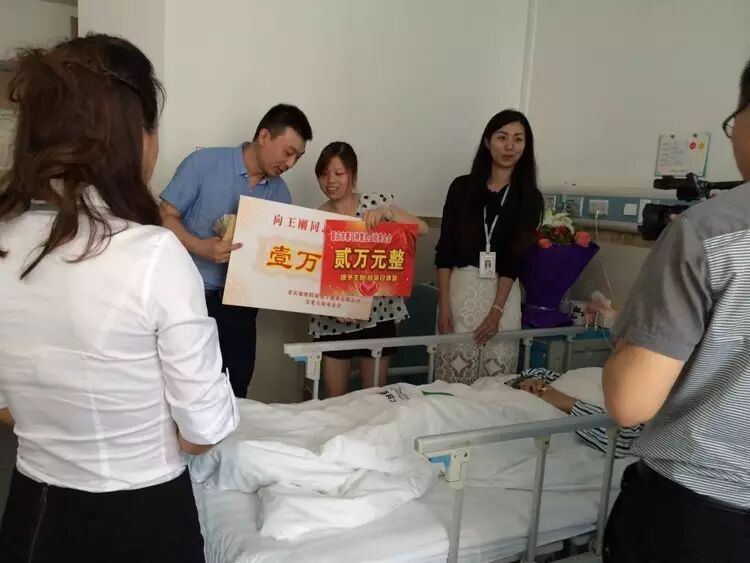 (2016年5月4日中午,赛玛特副总经理赵中会女士、人事行政经理廖文玉女士,代表集团前往医院探望王刚。同行的还有渝欧公司行政部代表。)