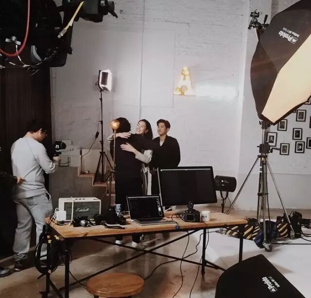 “石榴夫妇”崔始源和刘雯拍摄完,与黎晓亮拥抱