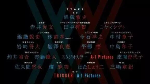 从制作阵容上看,这部《DARLING in the FRANKXX》确实不愧“国家队”的名头。且不说A-1 Pictures跟TRIGGER(就是大家口中的“扳机社”)的联合制作,光是看看制作组,锦织敦史、林直孝、田中将贺、今石洋之、福岛祐一、清水晓……这些个大佬级人物凑在一块,谁敢说这部动画会反响平平?