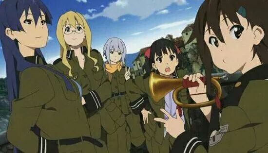 动画的选材在当时很新颖,走了全都是美少女的路子。本该是话题沉重的军事题材,却在一群美少女的表现下显得活泼可爱。拿到今天来看自然是常见套路,但那时除了《空·之·音》也就只有一部2009年的《轻音少女》了。