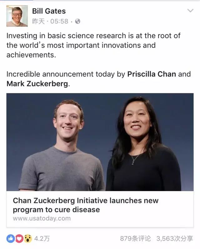 而在2016年9月,小扎和小陈还通过基金会宣布:未来10年将投入 30 亿美元(超过 200亿 元人民币)研发能助力医学研究的工具,用来治愈人类所有的疾病守卫下一代的生命。