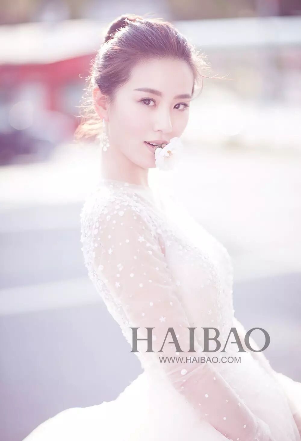 最后看到这张单人照,衔着白色小花的诗诗,透白到发光的陶瓷肌宛如女神一般。小编不得不感叹,娶到这样的找不出一丁点儿瑕疵的完美女人,吴奇隆真的是赚到了!