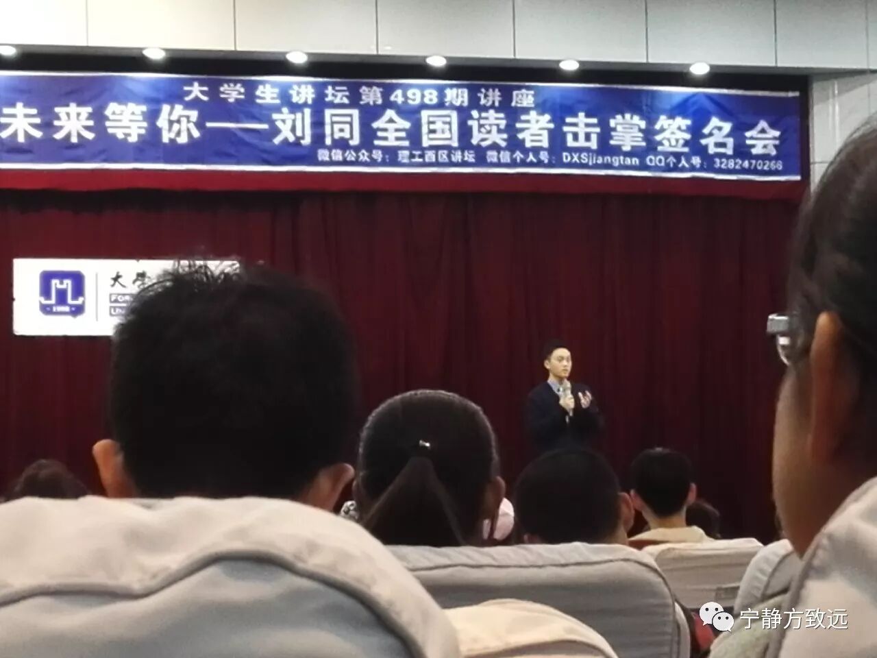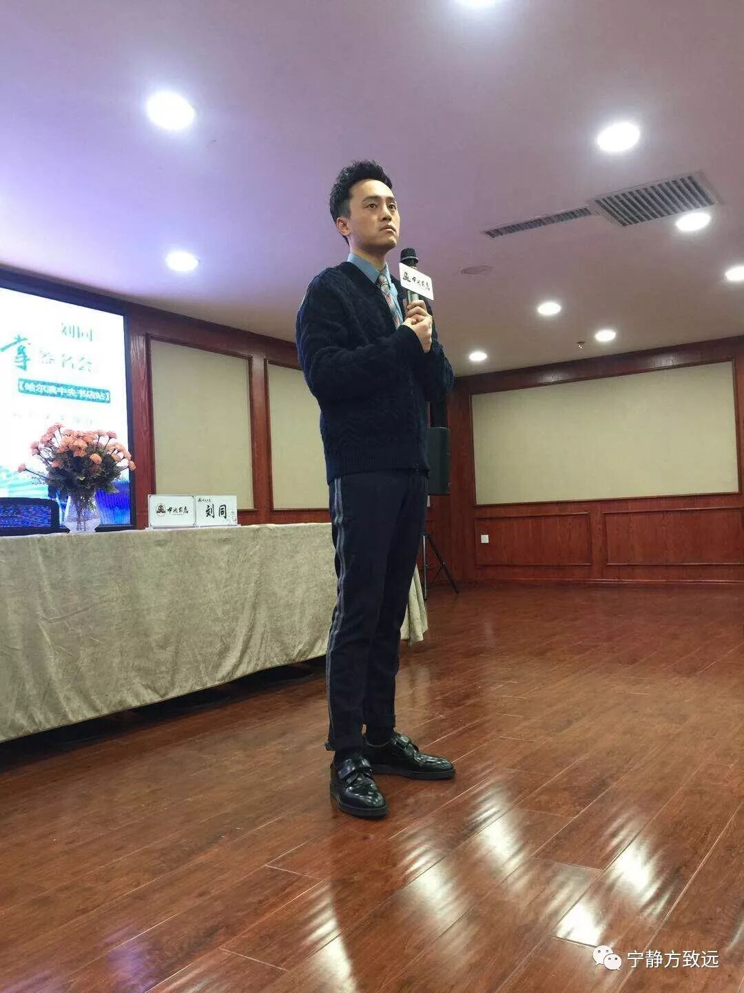 签名结束后,马不停蹄打车赶去哈理工大学参加他在哈尔滨的最后一场座谈会。
