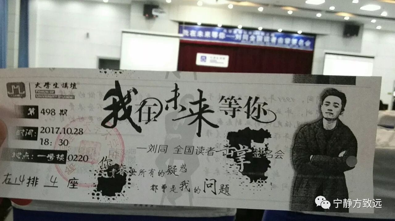 知道同哥要来大东北签售是在一个月前,看到他微博发的行程后知道签售是定在10月28日,那天是周六,这样我就有充足的时间去见他。万万没想到的是,在等他来的这一个月里,我是在纠结中度过的。"今天的想法是去见他,明天的想法是不去见他......"就这样一直循环着。不是不想见,是太怕见。我怕过去的回忆太过汹涌会吞噬了我好不容易建立起来的坚强。直到周五的晚上我心里还是有一个声音倔强地告诉我:不要去,就让他活在心里不好吗?