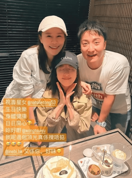 黄翠如与方力申为唐诗咏吃饭庆祝生日。
