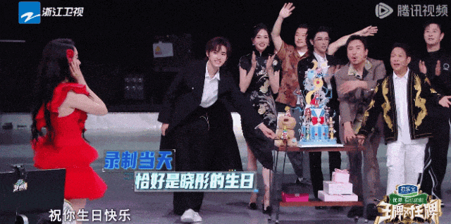 然后戏剧的一幕出现了:背后的屏幕上出现了为关晓彤庆生的VCR,原来这是一场为她生日准备的企划。