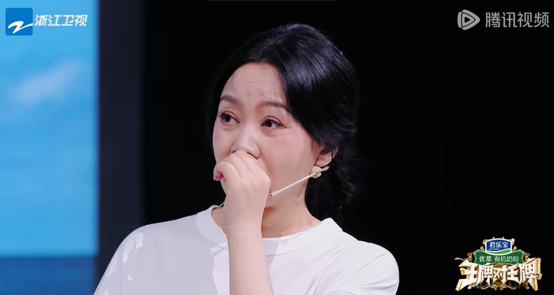 此时的关晓彤眼睛通红,捂着脸流泪,不知所措,讲话声音不仅带着哭腔还有些颤抖。