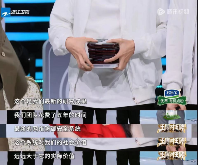 节目组请来了网络安全专业的研究组,向观众展示了一打光盘,说这是团队历时五年、耗资上亿的研究成果,是很重要的网络安全防御系统。