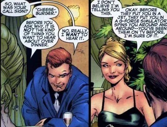 在2007年出版的《惊奇女士#11》中,就曾提到这个名称的由来,因为她在某一次飞行训练前饱腹了一顿美味,但很不幸地是她吐了个天崩地裂。所以为了纪念这次“难以忘却”的训练,卡罗尔就被叫作“芝士汉堡”了。