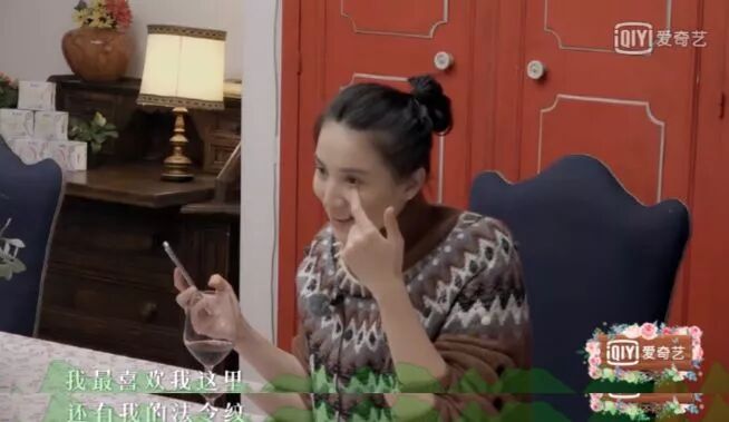 宋佳大笑的时候,整个脸都暴露给观众,眼角纹、法令纹全然不在意,翘着二郎腿的坐姿完全透露着她的随心所欲。