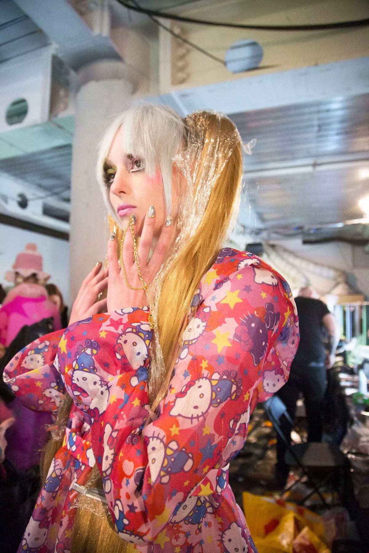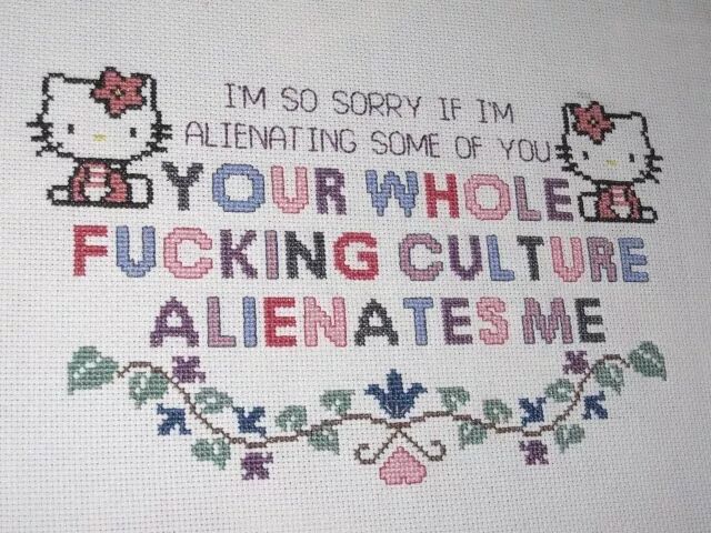Hello Kitty 很容易让各种团体产生认同感,并加以借鉴。连同爱心熊和彩虹小马,它们是哥特和非主流孩子的最爱。在2000年 MySpace 巅峰时期,我和姐姐几乎在旧金山 Westfield 商场的 Sanrio 专卖店花掉了2500美金。(当时要是有 Hello Kitty T.U.K. 联名超厚底鞋,我一定眼睛都不眨就买下来。)另外,朋克、酷儿运动积极人士、性从业者和暴女运动支持者(Riot Grrrls)也都会成为 Kitty 的粉丝。90年代地下女性朋克运动就借用 Kitty 的形象来推动激进女性化的回潮。