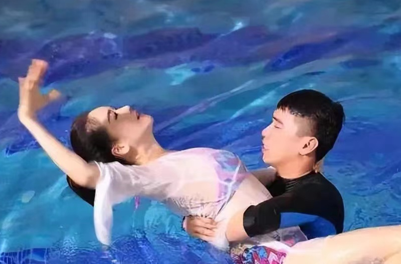 左小青里面穿的碎花泳衣套装,这套泳衣相对比较性感,有种维密秀的视觉感。而且配色鲜艳,让人的眼球一秒被她抓住,非常动人。