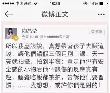 但这件事从头到尾都是陶晶莹自说自话,并且说着不拿小孩家人做噱头,但是她干这种事干的可不少,真的是戏太多。