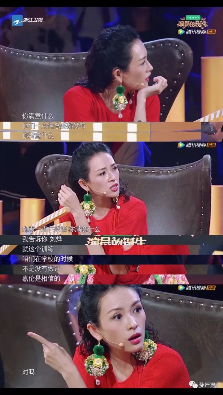 章子怡在比较郑爽和任嘉伦演戏的时候问过刘烨:“你满意什么?他们一点信念感都没有,你满意什么?郑爽一直在笑场,你满意什么?”